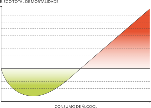 O consumo moderado de álcool está associado, entre outras, a uma diminuição de doenças cardiovasculares. O risco mais baixo verifica-se com ingestão de 20g/dia (2 unidades de bebida), que aumenta a partir de 70g/dia.